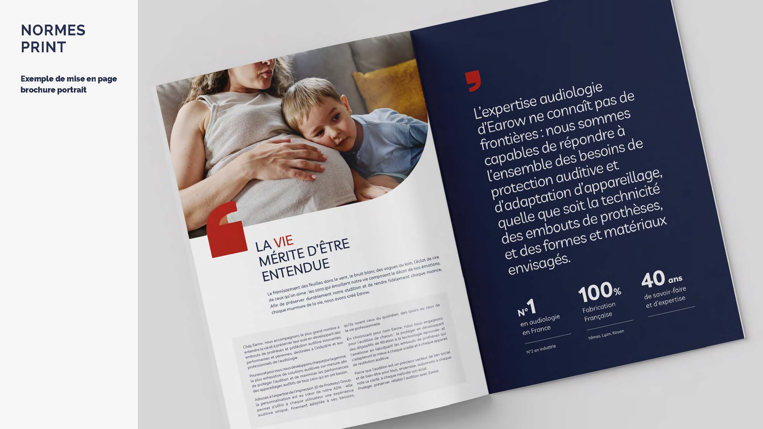 - Les guillemets. Par le choix des guillemets comme symbole principal de leur charte graphique, nous replaçons l’humain et la parole au coeur de leur identité. En effet, les guillemets symbolisent l’encadrement, la mise en relief ou le dialogue et la “valeur” de ce qui est cité. Ils mettent ainsi l’accent sur deux piliers essentiels de leur positionnement : “la vie mérite d’être entendu” et “l’audition comme vecteur de lien social”